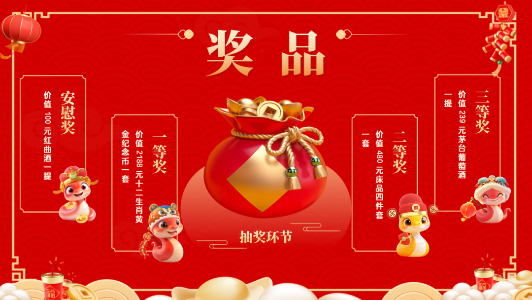 在節(jié)目表演過(guò)程中,還穿插了激動(dòng)人心的抽獎(jiǎng)環(huán)節(jié)。三輪抽獎(jiǎng),驚喜連連。多種多樣的獎(jiǎng)項(xiàng),每一位同事都收獲了屬于自己的那份幸運(yùn)。抽獎(jiǎng)的每一次揭曉,都伴隨著陣陣歡呼與掌聲,將年會(huì)的氛圍推向了高潮。豐厚的獎(jiǎng)品讓員工們驚喜連連,歡呼聲不斷。